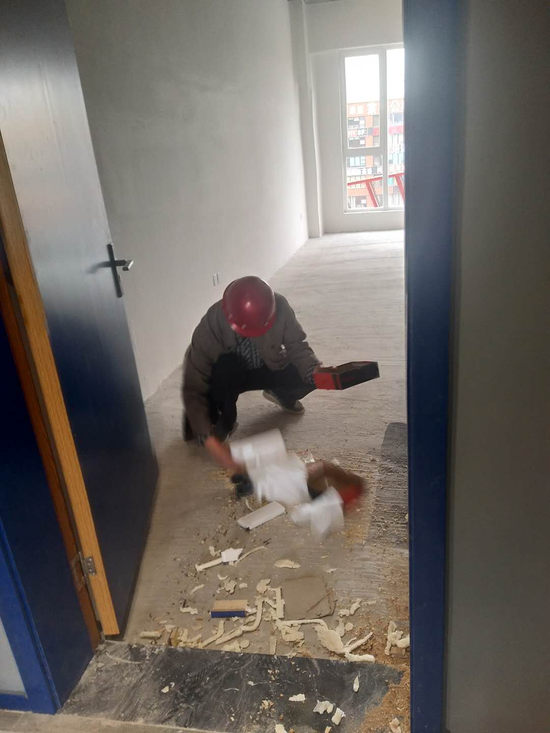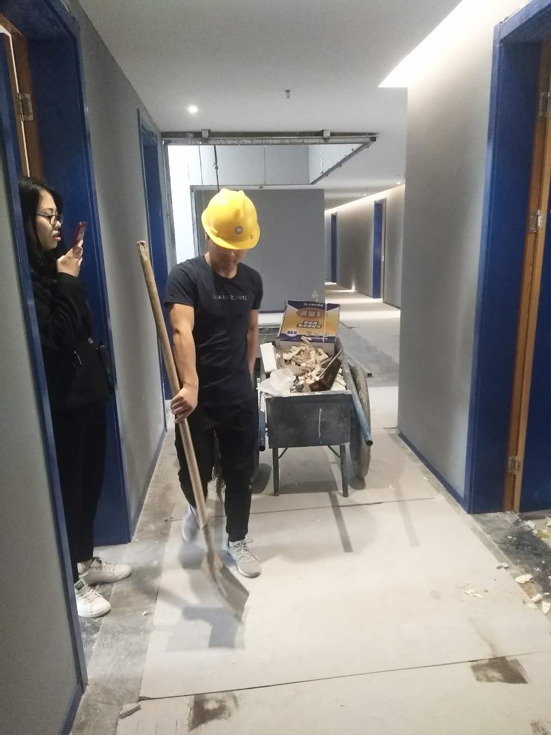 2018年5月6日工師傅們在實(shí)施***后一道工序打膠并打掃衛(wèi)生。